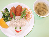 県下でもっとも古い歴史を持つかつら愛児園の給食は、卒園したお子さんたちにも「おいしかった」と懐かしがられていて、献立も工夫しおいしく温かい楽しい給食を心がけています。園調理室で専門の給食委託業者さんが調理した完全給食です。園には食事をするためのきれいなランチルームが完備しており、安定感とあたたかさのある磁器の食器を使い、給食やおやつはこのランチルームで衛生的にいただきます。