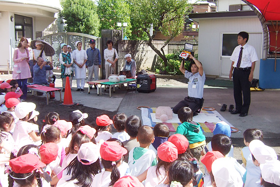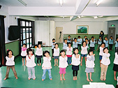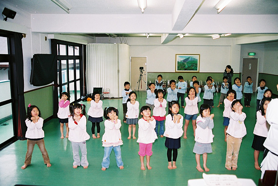 10時は園恒例の「おあつまり」の時間。みんな一斉に外へ出て朝礼(体操)をします。
